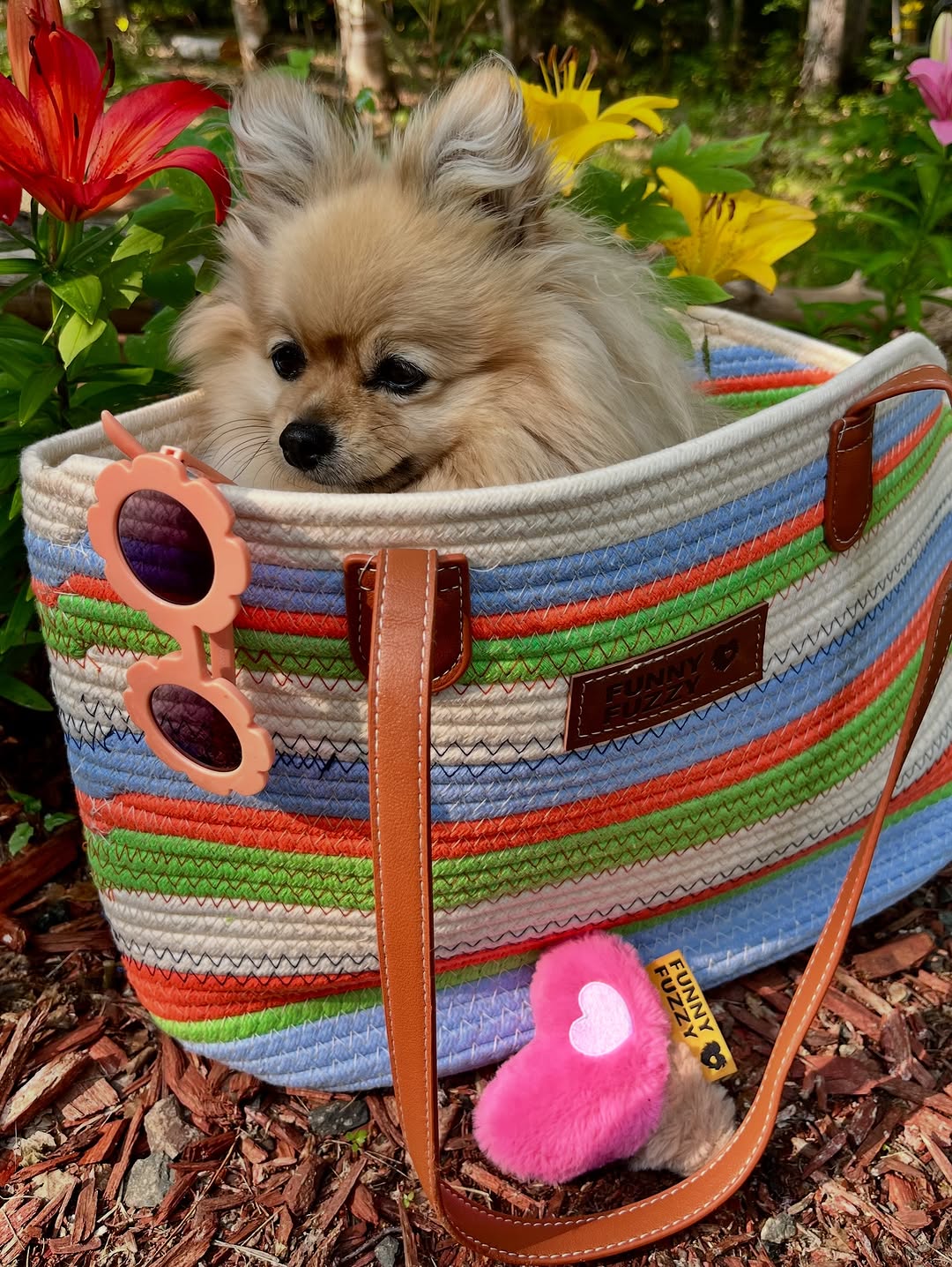 Won't Look Wednesday in style baby!!👜😎🌸🩵🧡💚So in LOVE with my New Handmade Lighweight Cotten Woven Beach Bag Pet Carrier-Summer Vacation Edition from @funnyfuzzy_pet
