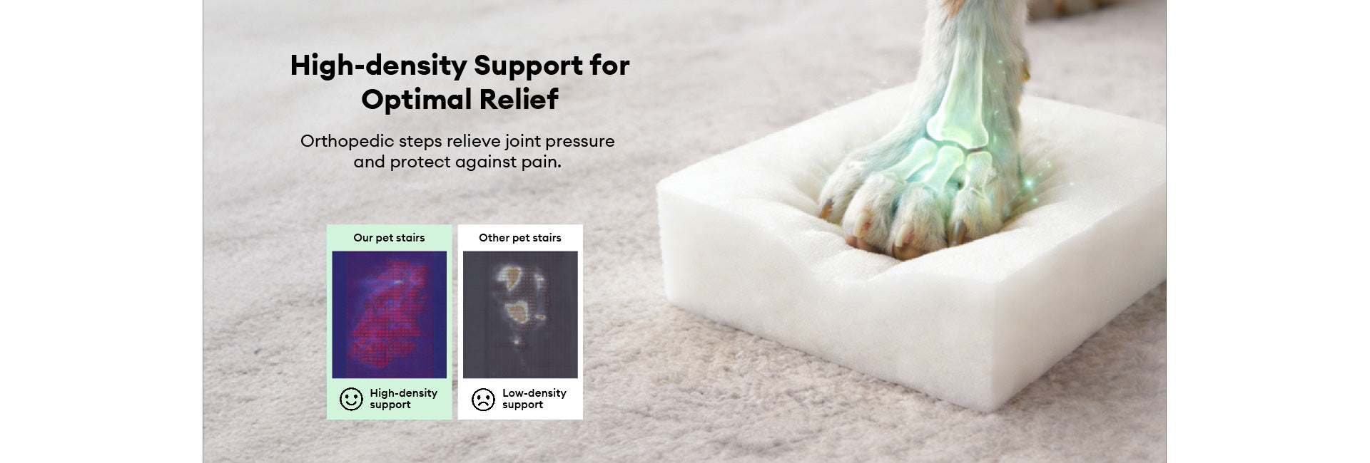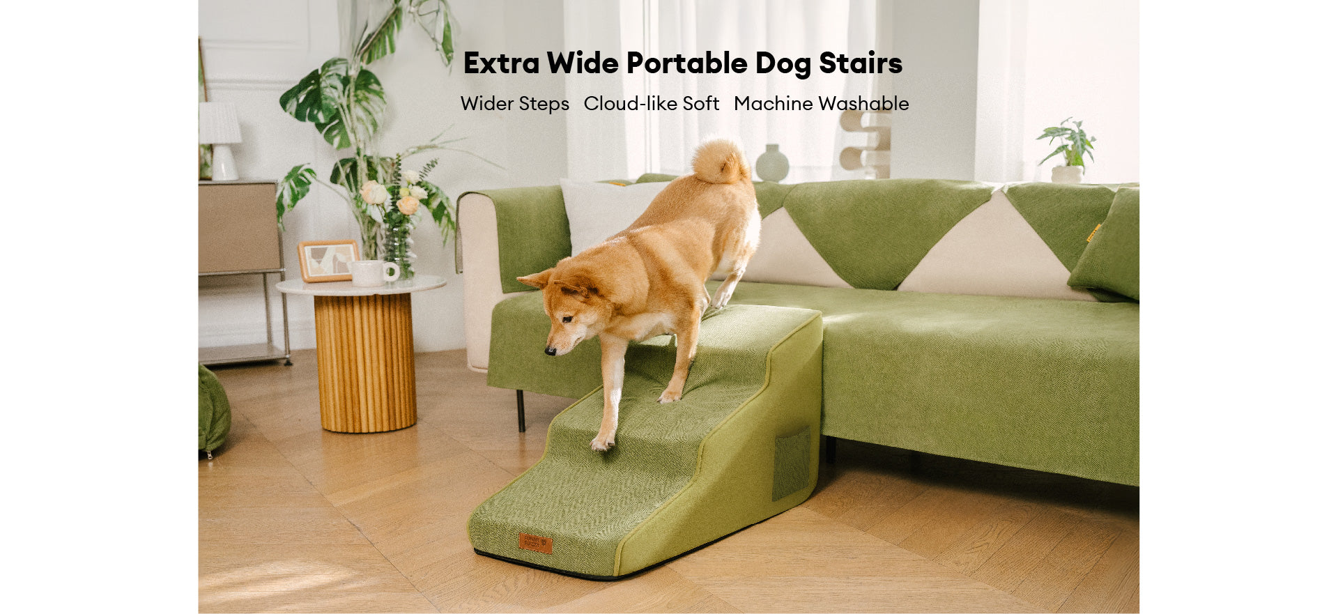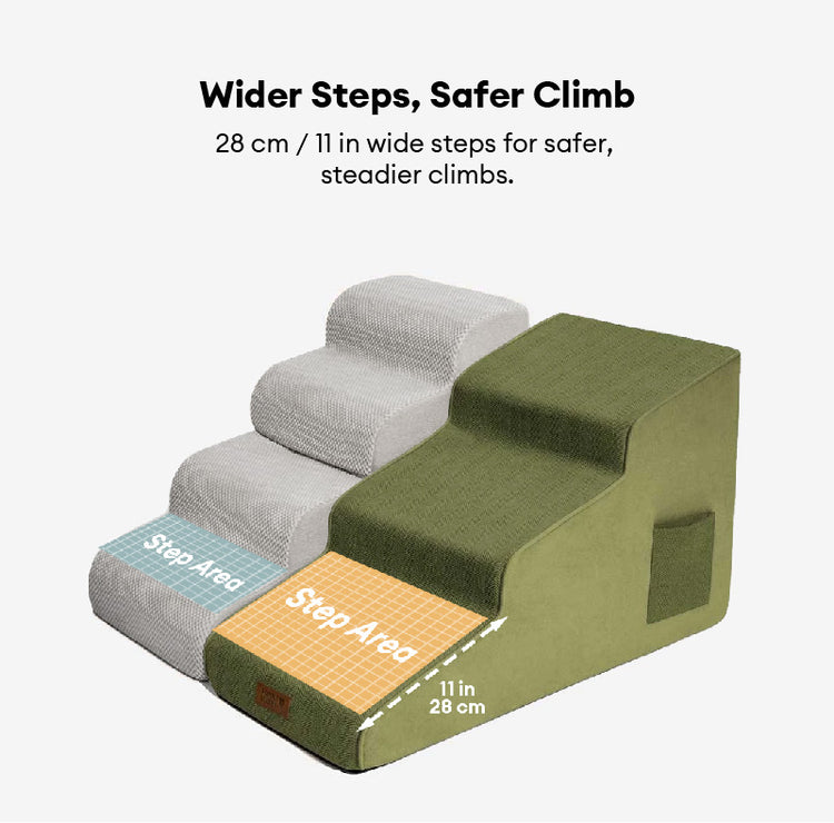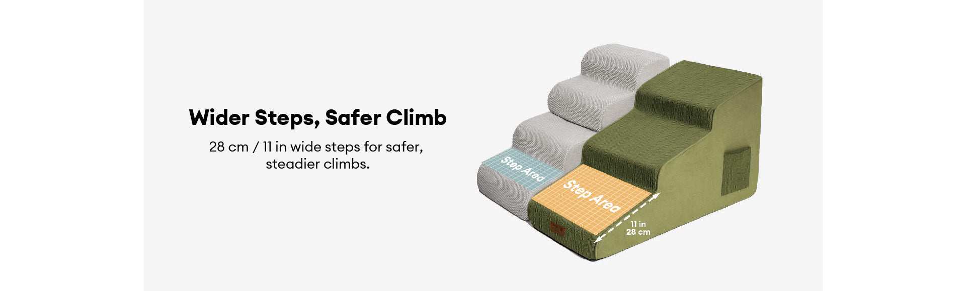 Extra-wide Joint-Friendly Gentle Slope: Extra-wide steps and a low incline provide smooth, stress-free access—ideal for pets with limited mobility, senior dogs, or smaller breeds who need a gentler climb.