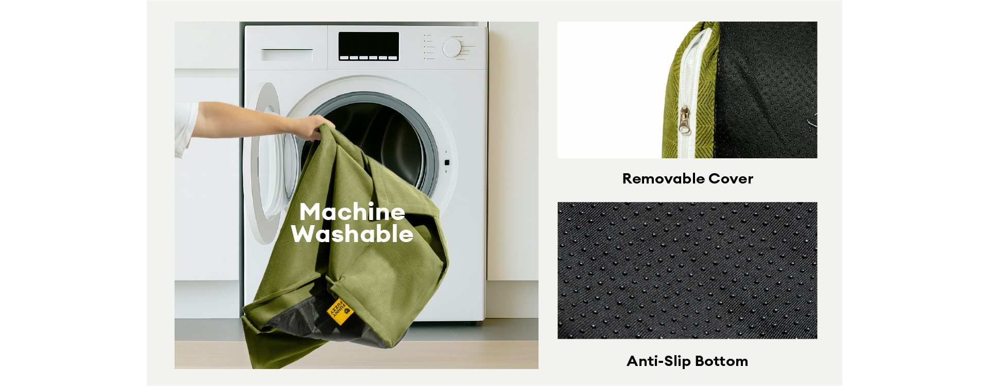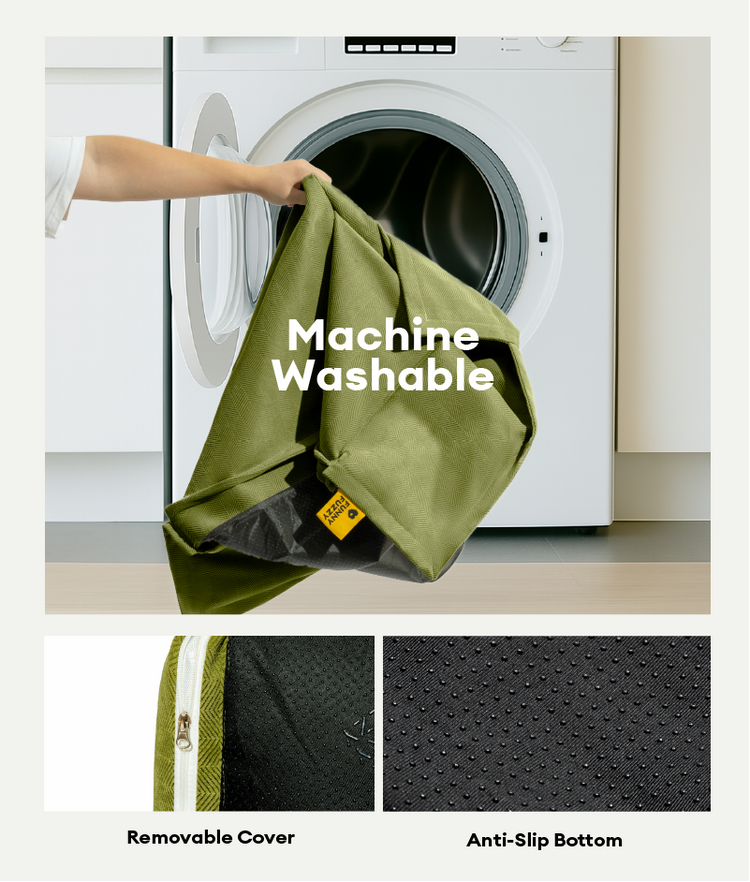 Anti-Slip Base & Removable Cover: The bottom is lined with anti-slip material for added safety, and the zip-off cover is machine-washable—making cleanup quick and stress-free.