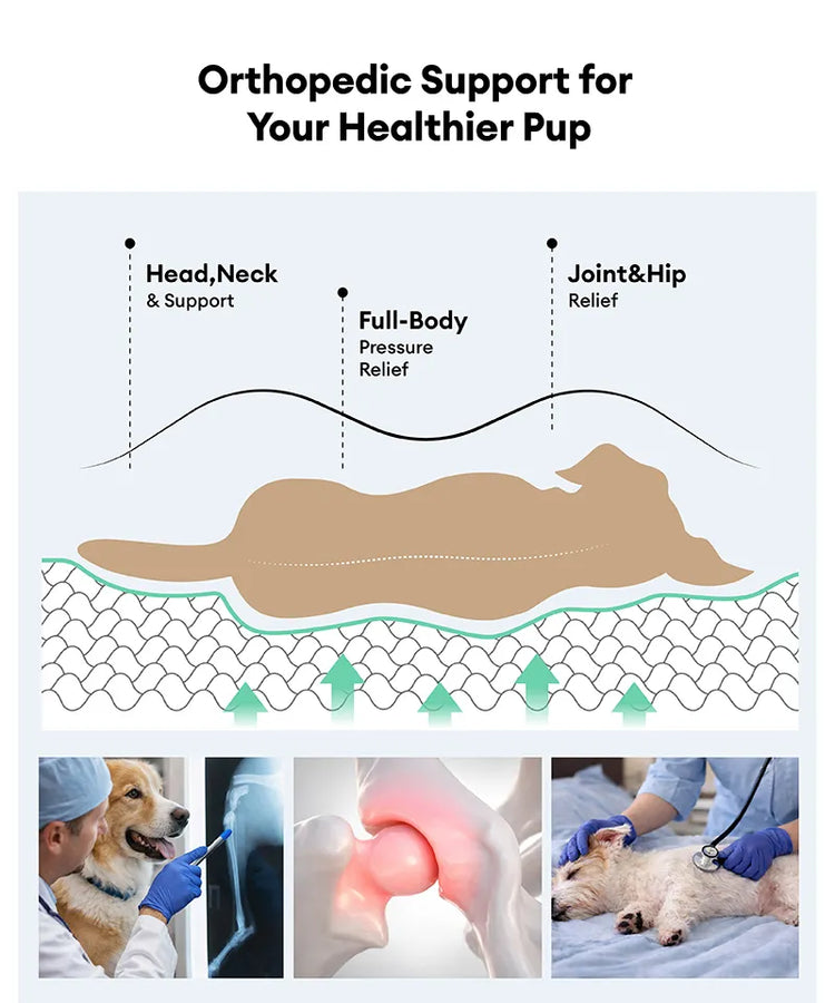 - Protects bones: The interior is filled with 3D high-density orthopedic sponge as well as pp cotton filled with full edges, which can relieve the pressure on joints and bones when the pet is resting, protect the health of the pet's spine, and allow the pet to comfortably place its head in any position while snoozing. Not only does it bring pets an all-round massage, it also reduces anxiety and promotes relaxation.