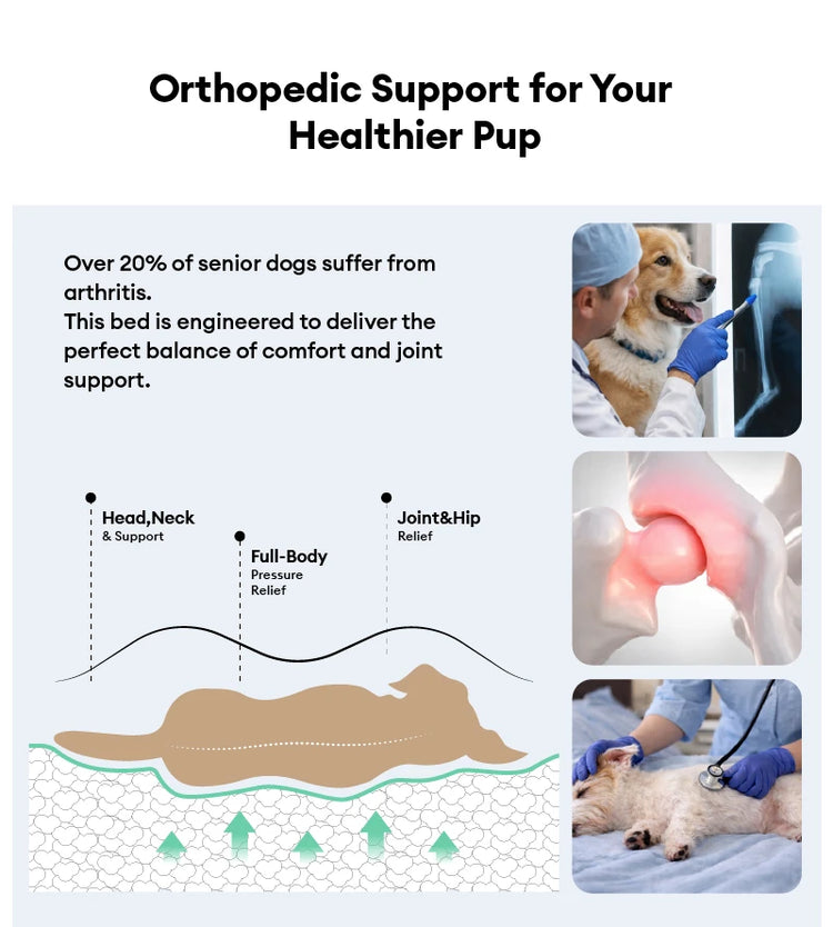 Orthopedic Support: The full-surrounded design offers unparalleled bone and joint support, relieving pressure points and helping to ease your dog into a more restorative sleep.
