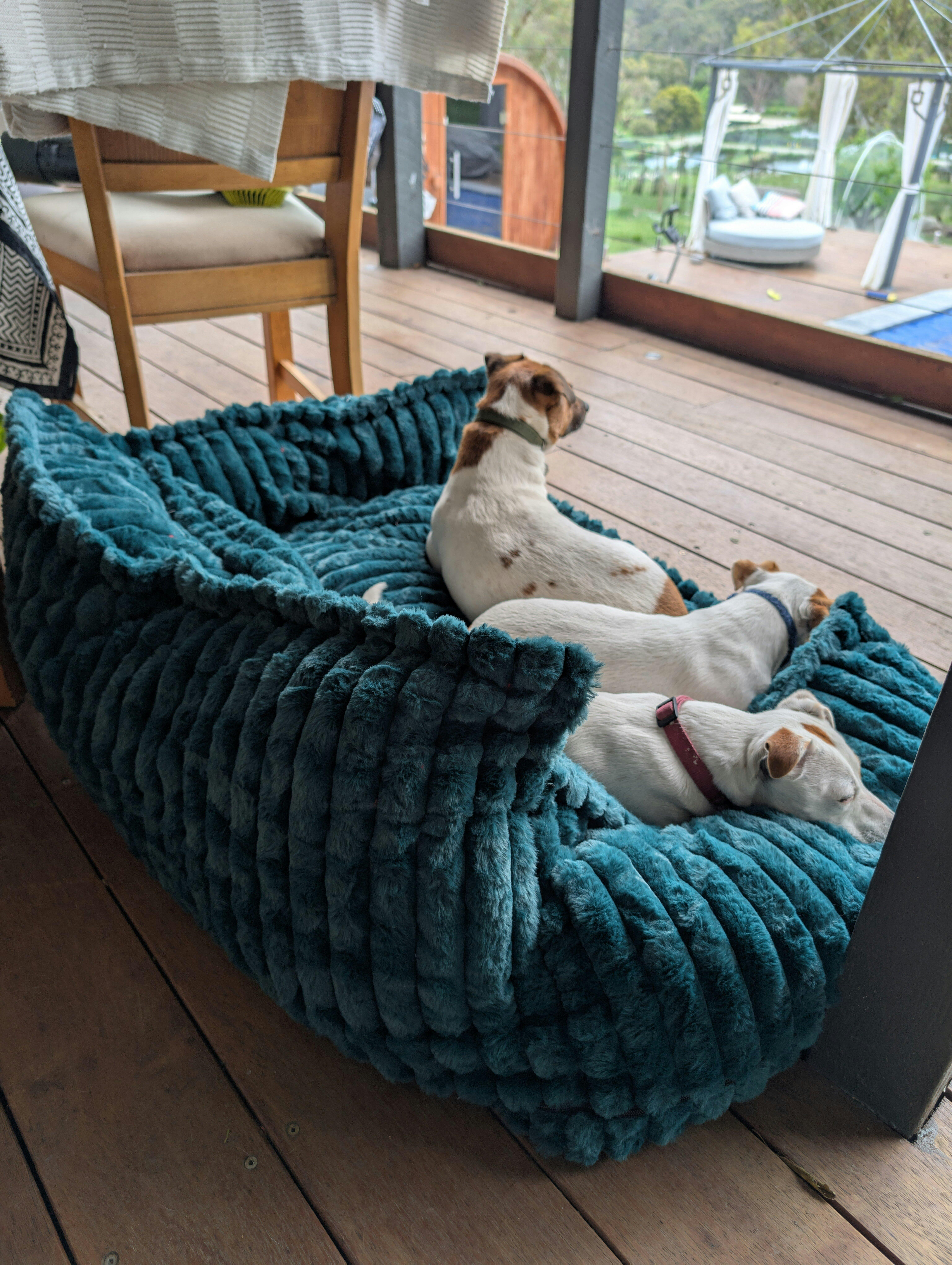 Snoozing When it comes to turning your living room into the ultimate relaxation space for your beloved pet, finding a sofa that offers the right level of comfort is key. FUNNYFUZZY Snoozy Dream has a comfortable balance of firmness and comfort, designed to give your pet a cosy place to stay warm. Suitable for small-medium, large dogs and cats.