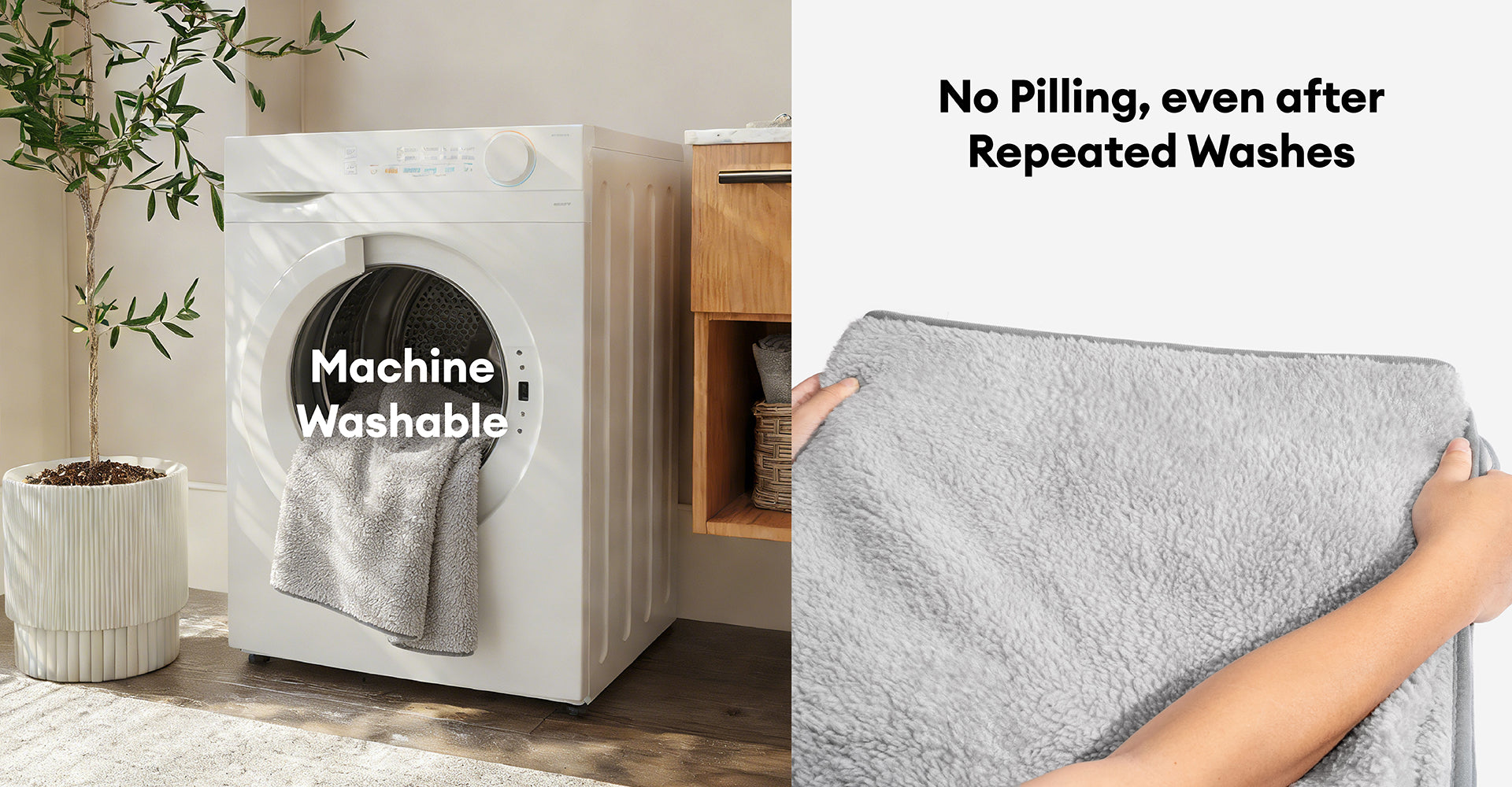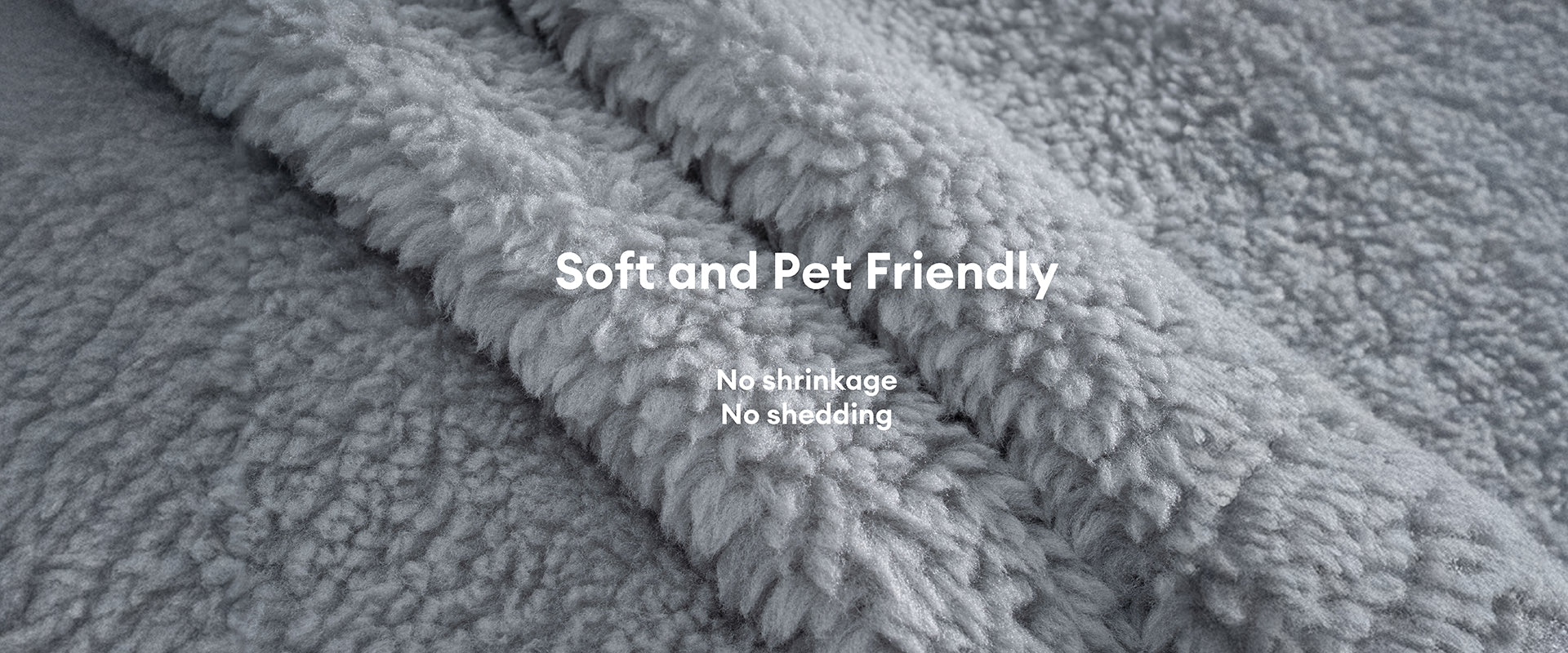 - Keeping a Fresh and Cosy Sofa with Waterproof Layer: By designing with a waterproof layer, the sofa cover can remain clean and odour resistant as it effectively prevents any liquid from leaking from the Sherpa side to the microfiber fleece side of the sofa cover.