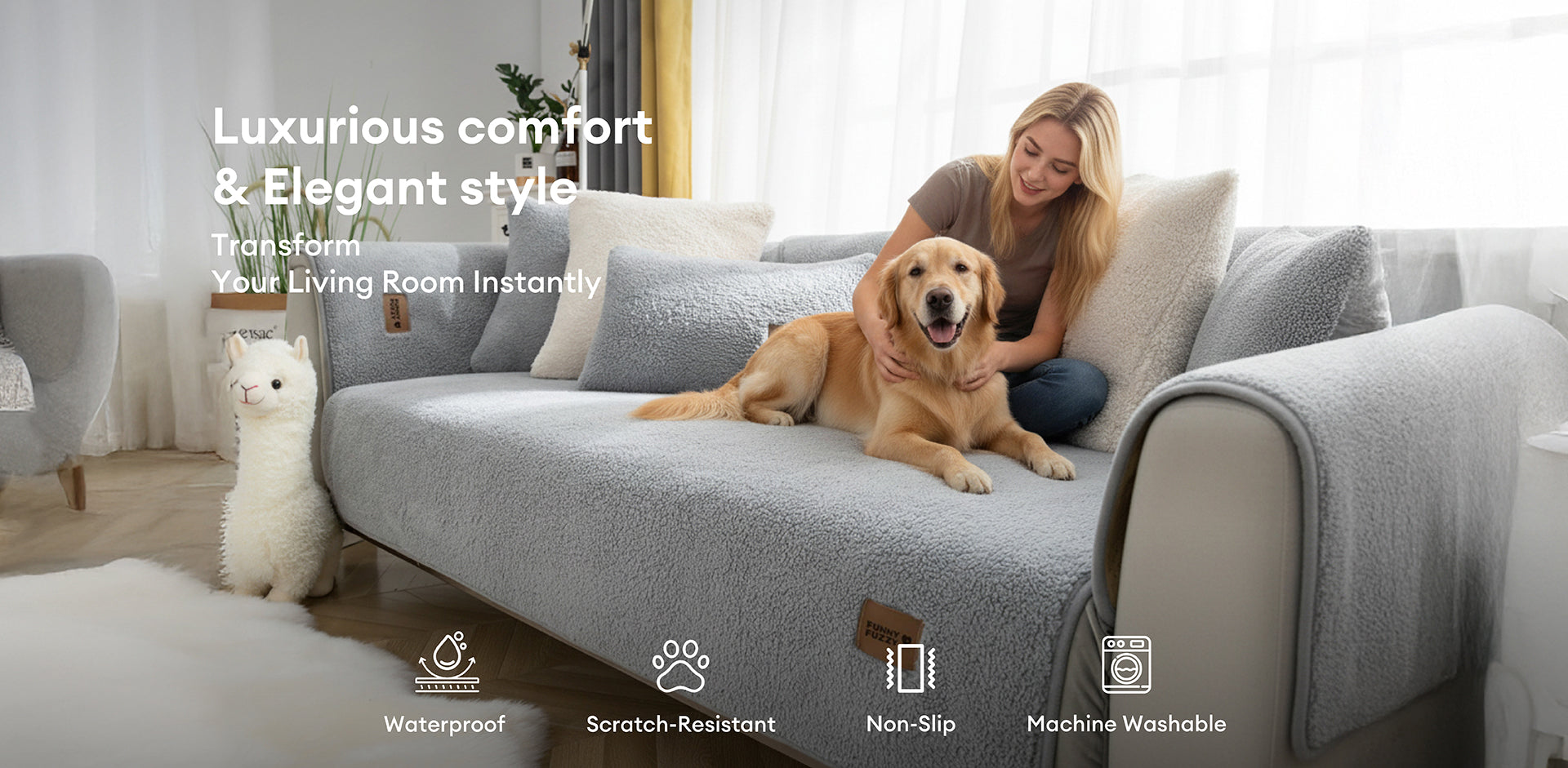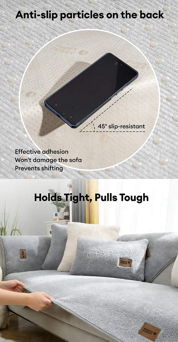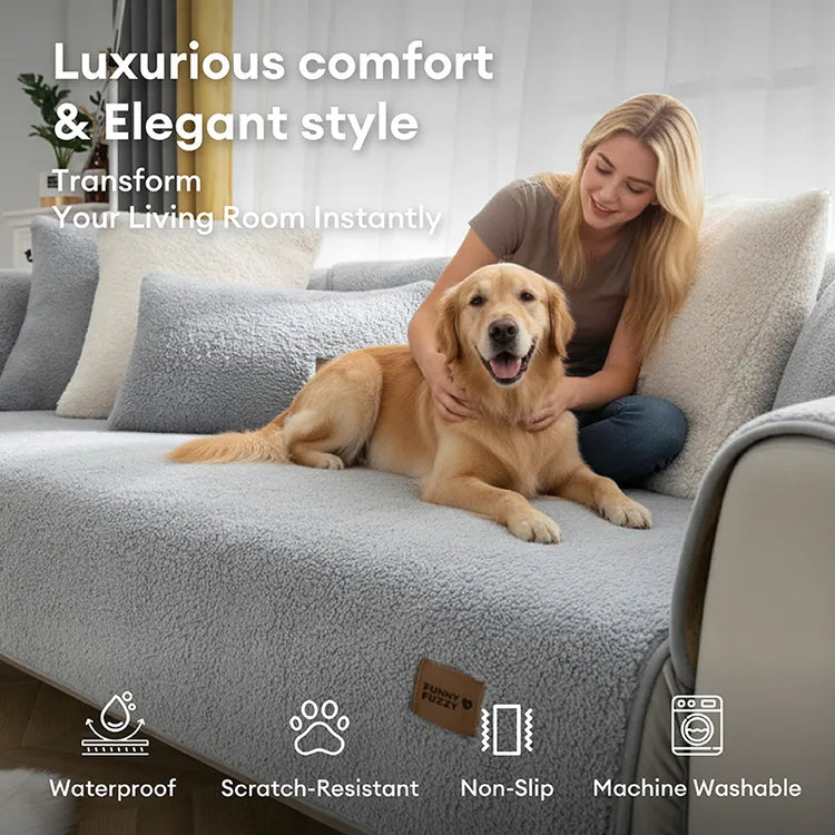 The FunnyFuzzy faux lambswool sofa cover is specially designed for comfort. The thick faux lambswool material with its own thermal properties provides you and your pets with the warmest sense of security in cold temperatures.
