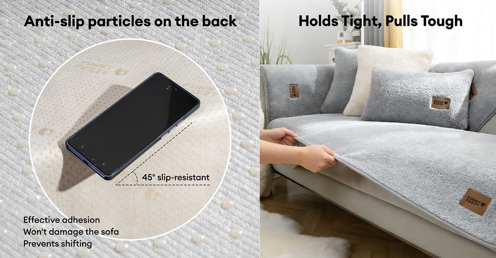 - Non-slip Bottom: The bottom of our sofa cover features a slip-resistant design, preventing it from sliding or shifting during use and providing added stability.